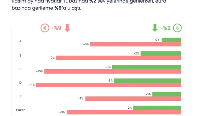 Rapora göre, Kasım ayında araç fiyatları bir önceki aya göre Euro bazında yüzde 9 gerilerken TL bazında gerileme yüzde 2 seviyelerinde seyretti. Satışta kalma süresi geçen aya göre ortalama 8 gün daha uzayarak 65 günü aştı.