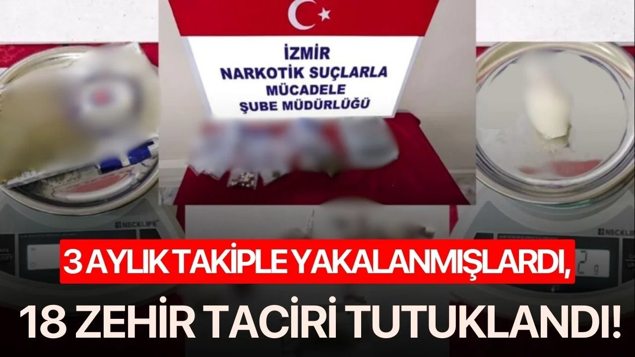 İzmir’in Selçuk ilçesinde polisin 3 ay süren titiz takibi sonrası düzenlenen eş zamanlı operasyonda, zehir tacirlerine darbe indirildi. Operasyon kapsamında gözaltına alınan 18 şüpheli, çıkarıldıkları mahkemece tutuklanarak cezaevine gönderildi.