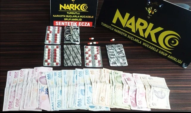 MANİSA’nın Turgutlu İlçesinde motosikletinde ve ikametinde 63 adet sentetik ecza hap ve üzerinde uyuşturucu ticaretinden elde edildiği değerlendirilen 4 bin 400 TL ele geçirilen S.K. (23) gözaltına alındı.