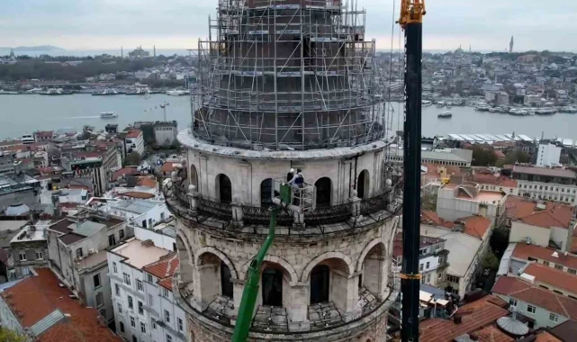 Galata Kulesi'nde 1 Kasım tarihinde başlayan restorasyon çerçevesinde 63 metrede bulunan 270 kiloluk bakır alemi 4 parça halinde vinçle indirildi. Dev alemin nefes kesen operasyonla indirilme anları ilk kez havadan görüntülendi.