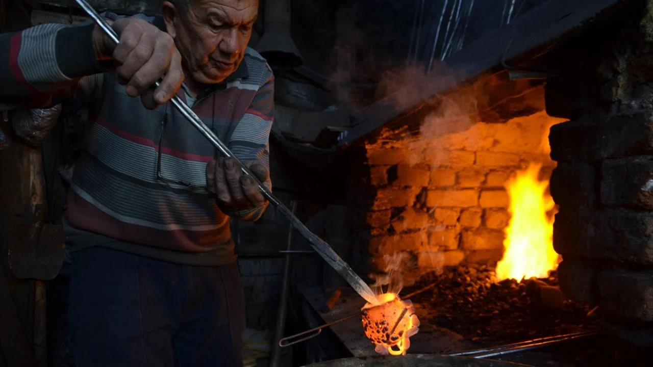 MANİSA'nın Demirci ilçesinde mesleğe çocukken babasının yanında başlayan 76 yaşındaki çan ustası Mustafa Sabancı, atölyesinde 65 yıldır geleneksel yöntemlerle üretim yapıyor.