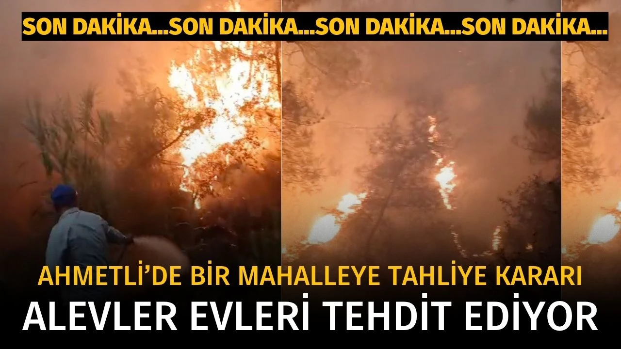 Manisa’nın Ahmetli ilçesinde devam eden orman yangını nedeniyle Matdere Mahallesi için tahliye kararı alındı. Ahmetli Belediyesi tarafından yapılan açıklamada, yangın tehlikesi sebebiyle vatandaşların güvenli bölgelere taşınması gerektiği bildirildi.