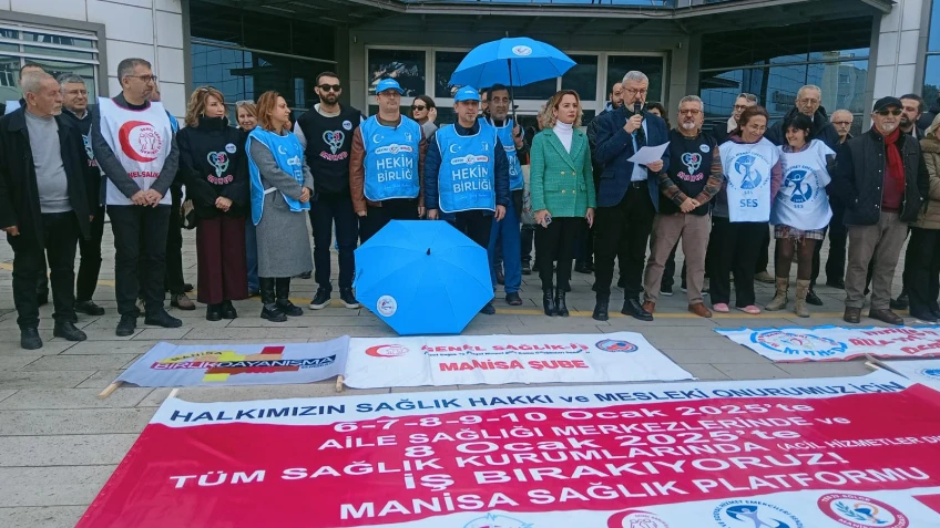 Manisa Sağlık Platformu'nun bileşenleri, MAHED, Birlik ve Dayanışma Sendikası, TDB, Genel Sağlık İş Sendikası, Hekim Birliği Sendikası, SES, Manisa Tabip Odası, Tabipsen, Manisa İl Sağlık Müdürlüğü binası önünde basın açıklaması düzenledi.