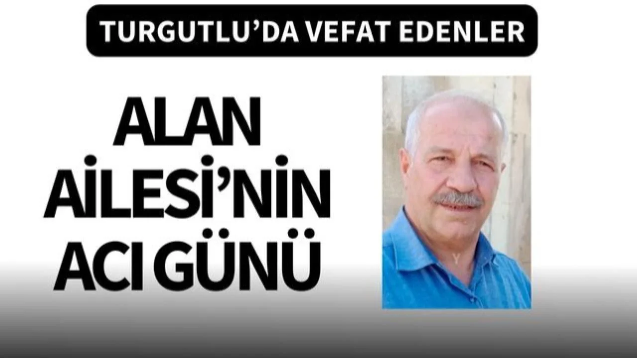 TURGUTLU İlçesi sakinlerinden marangoz Ayhan Alan vefat etti. Cenazesi bugün Mezarlık Camii’nde ikindi namazını müteakip kılınacak cenaze namazının ardından yeni mezarlıkta toprağa verilecek.