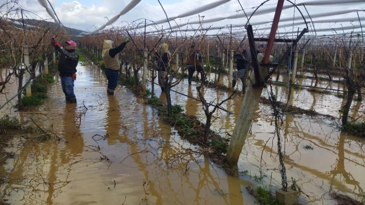 Sarıgöl ilçesine bağlı Emcelli Mahallesi Sütmezli mevkisinde bağların göle dönmesine rağmen budama yapan işçiler, ekmek parası için suyun ve çamurun içinde mesai yapıyor. Bağlarda oluşan su birikintileri, çalışma şartlarını oldukça zorlaştırırken, işçiler işlerini aksatmadan sürdürmeye devam ediyor.