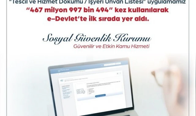 Çalışma ve Sosyal Güvenlik Bakanı Vedat Işıkhan, e-Devlet Kapısı'nda en çok ziyaret edilen uygulamanın 'SGK Tescil ve Hizmet Dökümü-İşyeri Unvanı Listesi' olduğunu açıkladı.