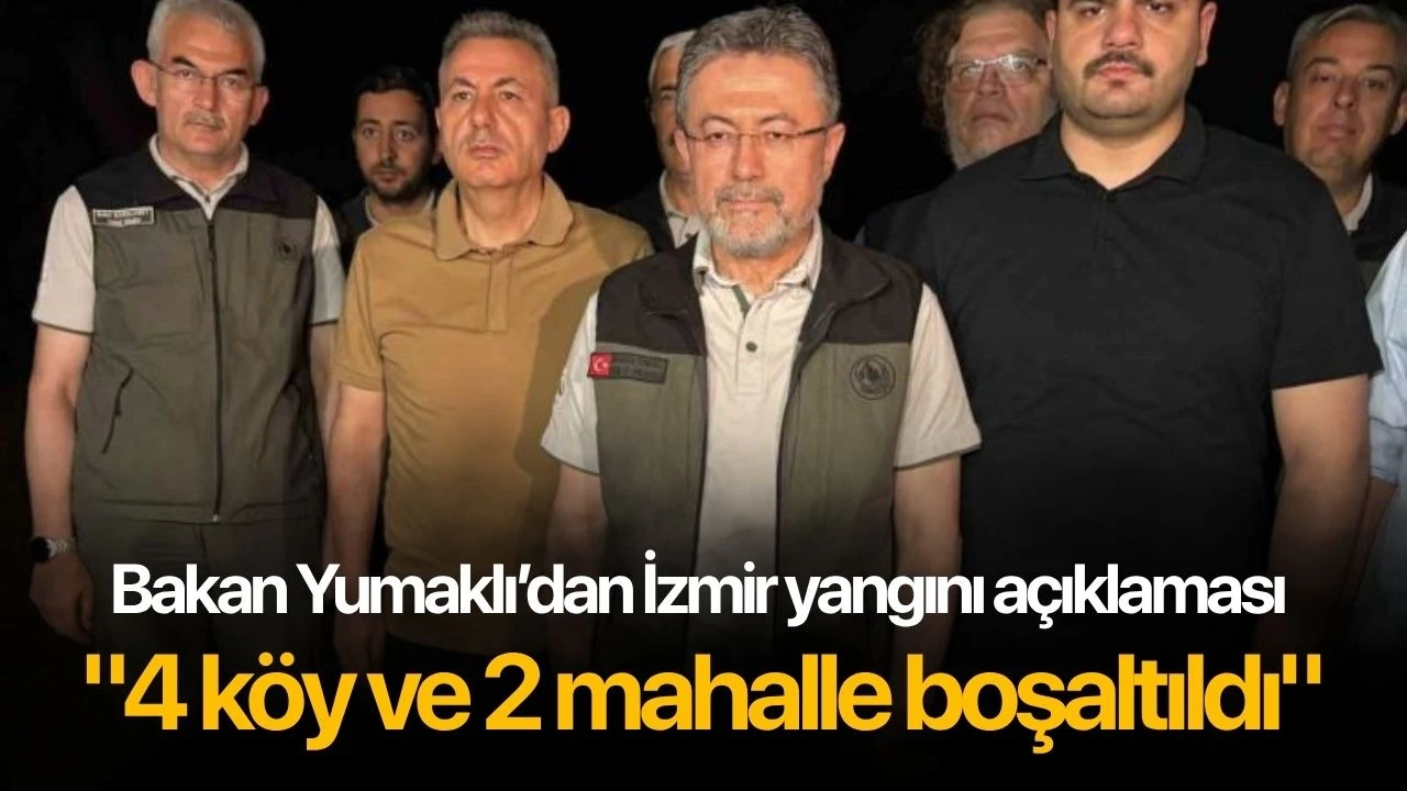 Tarım ve Orman Bakanı İbrahim Yumaklı, İzmir’in Menderes ilçesindeki yangınla ilgili, "Arkadaşlarımız teyakkuz halinde. Yerleşim yerleri var, onlarla da irtibatlı haldeler. Şu an için boşaltılan 4 köy ve 2 mahalle vardı. Gerekirse herhangi bir risk almayacağız. Yerleşim yerlerinden boşaltılması gerekenler varsa da onları koordineli bir şekilde AFAD burada, diğer emniyet, jandarma koordineli halde onları da boşaltacağız. Şu an için gerek duymuyoruz" dedi.