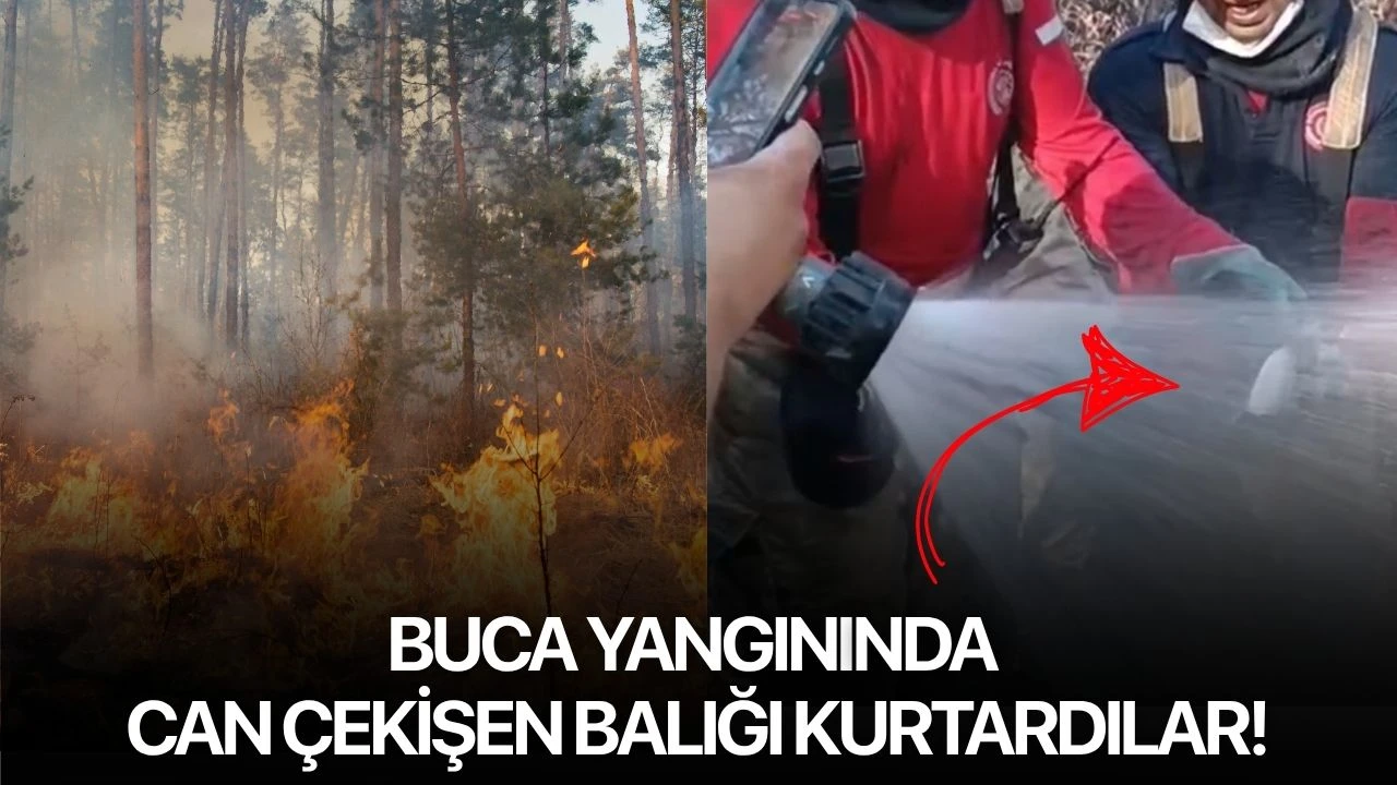 İzmir’in Buca ilçesinde meydana gelen orman yangınında canlı bulunan bir balık, itfaiye ekipleri tarafından kurtarılırken o anlar cep telefonu kamerası ile görüntülendi.
