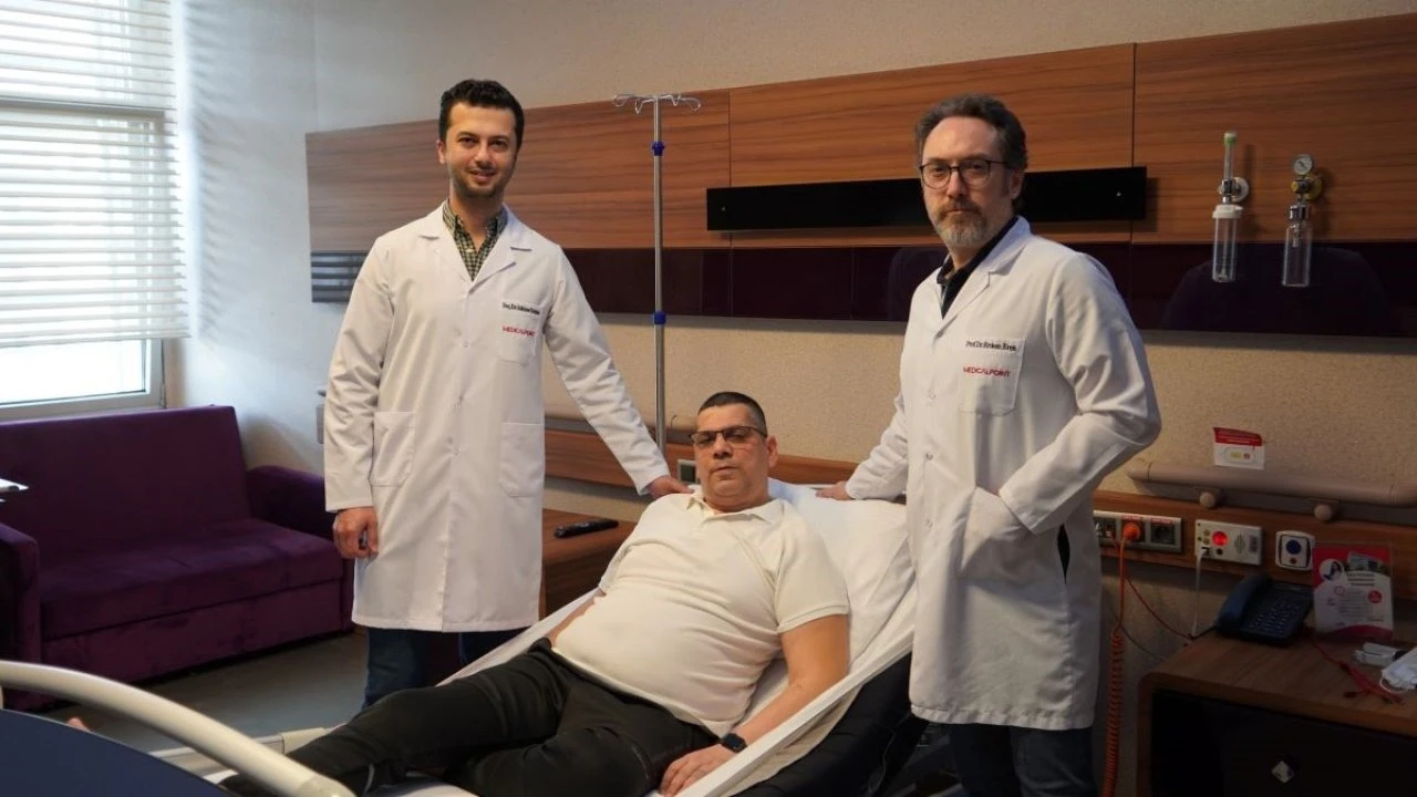 Şiddetli baş ağrıları ve görme sorunları şikayetiyle İzmir Ekonomi Üniversitesi (İEÜ) Medical Point Hastanesi’ne başvuran Sedat Elmas, beyin ve sinir cerrahisi ile kulak burun boğaz (KBB) hastalıkları uzmanlarının multidisipliner çalışması sayesinde sağlığına kavuştu. İEÜ Medical Point Hastanesi Beyin ve Sinir Cerrahisi’nden Doç. Dr. Gökhan Gürkan, "Sedat Bey, dayanılmaz baş ağrıları, bulanık görme ve görme kabiliyetinde belirgin bir azalma şikayetiyle hastanemize başvurdu. Yapılan detaylı tetkikler ve MR görüntülemeleri, beyinde oldukça büyük bir kitle olduğunu ortaya çıkardı. Daha önce gerçekleştirilen ameliyatla tümörün büyük bir kısmını almıştık. Ancak, büyük bir operasyon olduğu için tümörün bir kısmını bırakarak kalan kısmını başka bir zamanda tedavi etmeyi uygun görmüştük" dedi.