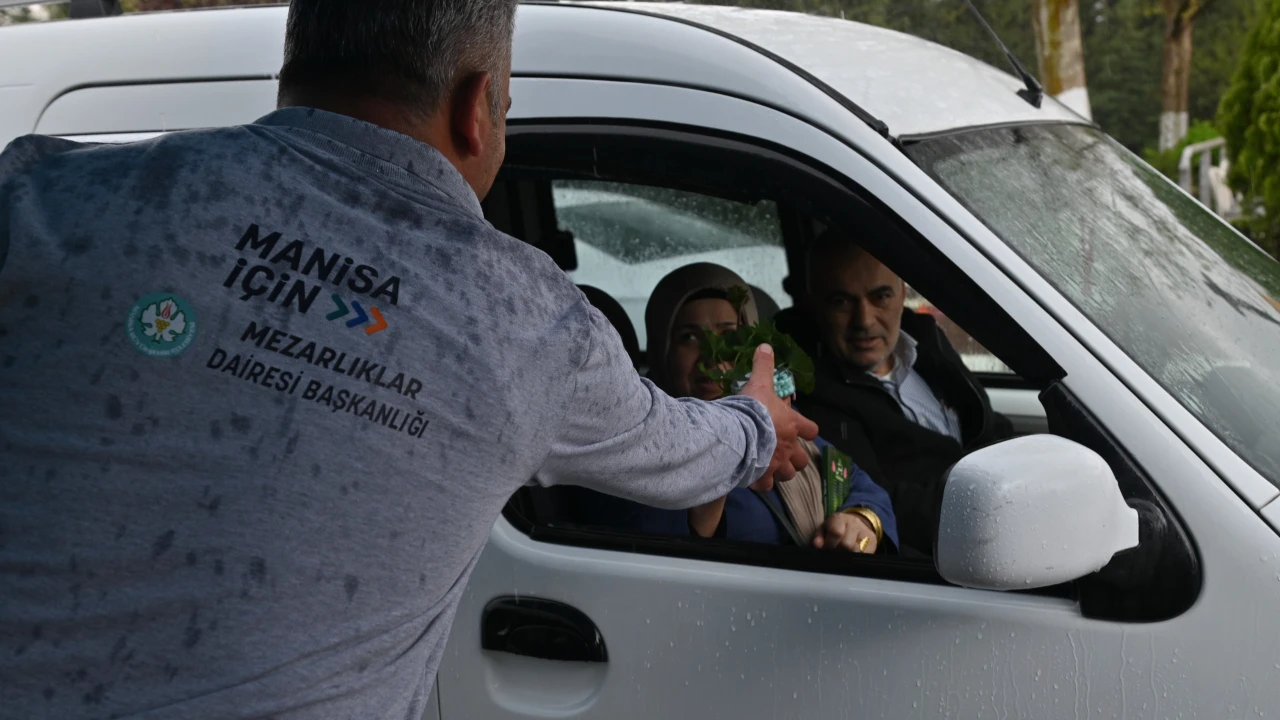 Manisa Büyükşehir Belediyesi, 17 ilçede arife günü için mezarlık ziyareti yapan vatandaşlara çiçek ve tesbih dağıtarak bu özel günde yanlarında oldu. Vatandaşlar çiçekleri yakınlarının mezarlarına dikti.
