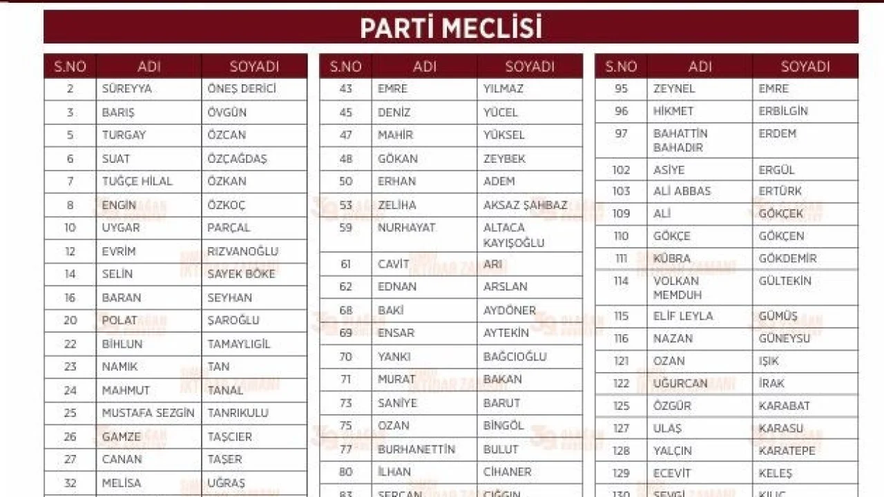 Özel’in anahtar listesinde PM adayları arasında Süreyya Öneş Derici, Barış Övgün, Turgay Özcan, Suat Özçağdaş, Tuğçe Hilal Özkan, Engin Özkoç, Uygar Parçal, Evrim Rızvanoğlu, Selin Sayek Böke, Baran Seyhan, Polat Şaroğlu, Bihlun Tamaylıgil, Namık Tan, Mahmut Tanal, Mustafa Sezgin Tanrıkulu, Gamze Taşcier, Canan Taşer, Melisa Uğraş, Mehmet Salih Uzun, Pınar Uzun Okakın, İsmail Atakan Ünver, Ozan Varal, Mehmet Necati Yağcı, Deniz Yavuzyılmaz, Emre Yılmaz, Deniz Yücel, Mahir Yüksel, Gökan Zeybek, Erhan Adem, Zeliha Aksaz Şahbaz, Nurhayat Altaca Kayışoğlu, Cavit Arı, Ednan Arslan, Baki Aydöner, Ensar Aytekin, Yankı Bağcıoğlu, Murat Bakan, Saniye Barut, Ozan Bingöl, Burhanettin Bulut, İlhan Cihaner, Sercan Çıggın, M. Gül Çiftci Binici, Cansel Çiftçi, Nihat Dağ, Gülşah Deniz Atalar, Bedirhan Berk Doğru, Zeynel Emre, Hikmet Erbilgin, Bahattin Bahadır Erdem, Asiye Ergül, Ali Abbas Ertürk, Ali Gökçek, Gökçe Gökçen, Kübra Gökdemir, Volkan Memduh Gültekin, Elif Leyla Gümüş, Nazan Güneysu, Ozan Işık, Uğurcan Irak, Özgür Karabat, Ulaş Karasu, Yalçın Karatepe, Ecevit Keleş, Sevgi Kılıç, Berk Kılıç, Sinem Kırçiçek, Önder Kurnaz, Burcu Mazıcıoğlu ve Aylin Nazlıaka yer aldı.