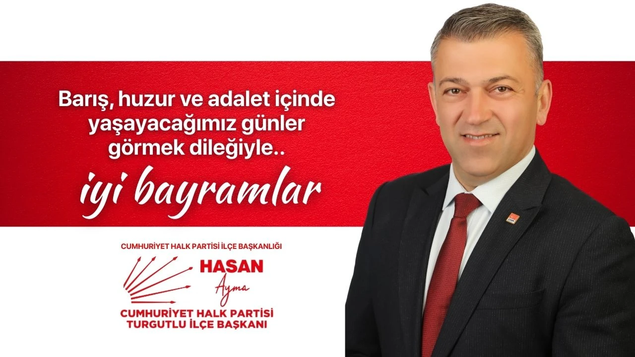 Cumhuriyet Halk Partisi Turgutlu İlçe Başkanı Hasan Ayma, tüm vatandaşların bayramını kutladığı mesajında "Barış, huzur ve adalet içinde yaşayacağımız günler