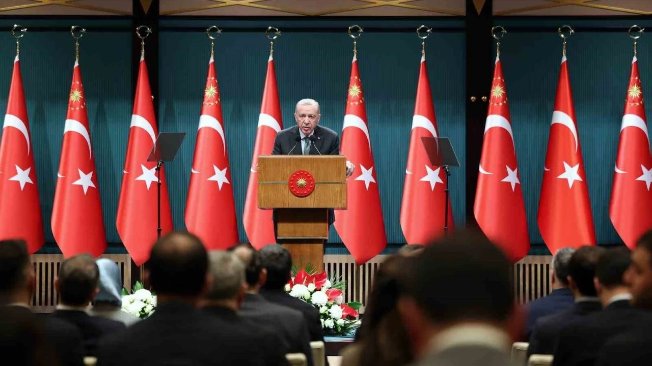 Cumhurbaşkanı Recep Tayyip Erdoğan, Kabine Toplantısı sonrası Millete Sesleniş konuşmasını gerçekleştirdi. Kabine Toplantısı’nda ekonomiden dış politikaya, sanayiden iç ve dış güvenliğe kadar birçok konuyu ele aldıklarını kaydeden Cumhurbaşkanı Erdoğan, "Hizmet eden izzet bulur anlayışıyla gece gündüz demeden büyük ve güçlü Türkiye’yi inşa mücadelemizi sabırla sürdürüyoruz. Son Kabine toplantımızdan bugüne bu ülküyü kendimize bayrak yaparak, aziz milletimize olan hizmet borcumuzu hakkıyla ödemeye çalıştık. Almanya Cumhurbaşkanı Sayın Steinmeier’in ülkemizi ziyareti bizim için anlamlıydı. Kendisiyle terörle mücadele, düzensiz göç, vatandaşlarımızın vize sorunu, savunma sanayii ve Almanya’daki Türk toplumunu ilgilendiren hususlar gibi ortak gündemimizdeki birçok konuyu detaylıca istişare ettik" diye konuştu.
