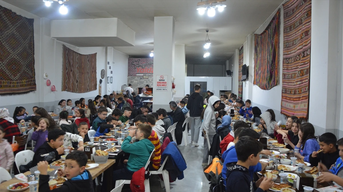 Hayırsever Kazım Aysan'ın ilçedeki bir restoranda gerçekleştirdiği etkinlikte 200 çocuk birlikte iftar yaptı.