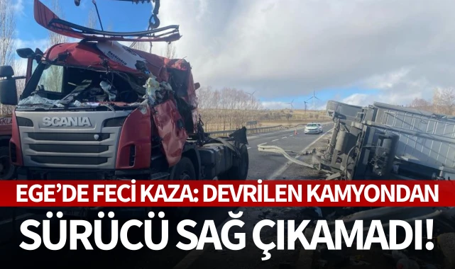 Uşak-Afyonkarahisar karayolu üzerinde devrilen tırın sürücüsü hayatını kaybetti.