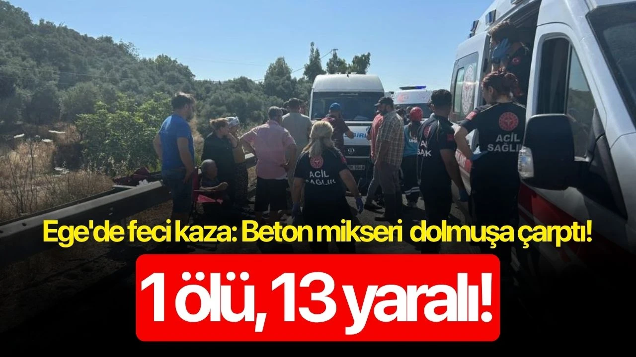 Muğla'nın Milas ilçesinde beton mikserinin birlik yolcu taşıyan dolmuşa çarpması sonucu 1 kişi öldü, 13 kişi de yaralandı.