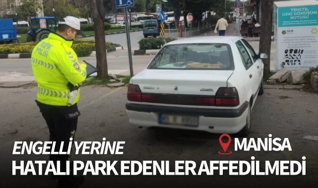 Manisa İl Emniyet Müdürlüğü Trafik Denetleme Şube Müdürlüğü ve ilçe trafik birimleri tarafından il genelinde engelli park yerlerine hatalı park eden araçlara yönelik gerçekleştirdiği denetimlerde 103 araç ve sürücüsüne 87 bin 200 TL idari para cezası kesildi.