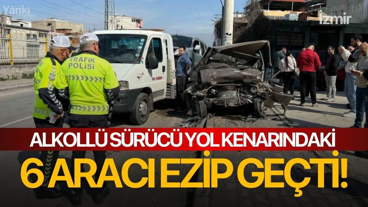 İzmir’in Buca ilçesinde sürücüsünün alkollü olduğu ve aşırı hız yaptığı iddia edilen lüks otomobil, yol kenarındaki 6 aracı ezip geçti. Kazada hafif yaralanan sürücü hastaneye kaldırıldı.