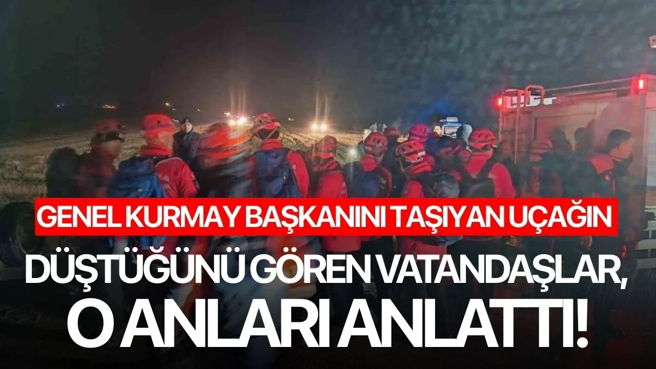 Gazi Özgür’se saat 20.00-21.00 sıralarında yüksek bir patlama sesi duyduğunu ifade ederek, "Bir de yoğun bir sis ve hafif bir yağmur vardı. Patlamanın neticesini bilemediğimizden dolayı anlık haberler yayılmaya başladı. Haberler yayılmaya başlayınca arabaya bindim. Bölgede Jandarma ekipleri dronlarla arama yapıyorlardı. Deprem oluyor ve depremden önce gelen patlama sesi gibi bir ses geldi. Kalıntıları ilk gençler görünce Jandarmaya haber vermişler. Jandarma da olay yerine geldi ve herkesi uzaklaştırdı. Uçağın enkazı bulundu" diye konuştu.