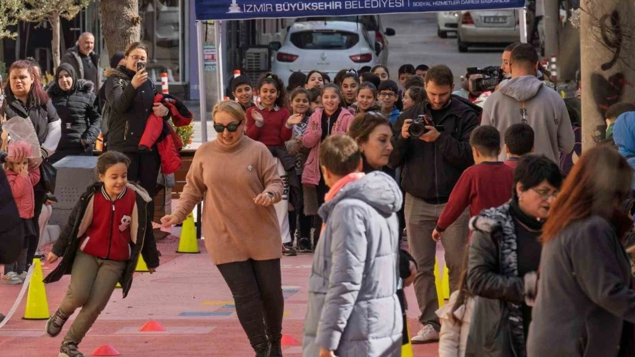 İzmir Büyükşehir Belediyesinin ’Güzel İzmir Hareketi’ kapsamında; güvenli, çevre dostu ve rengarenk bir alana dönüştürülen Karabağlar Cevdet Güçlüer İlkokulu ve Yunus Emre Ortaokulu çevresi ’Oyunlar da Bizim Sokaklar da Bizim’ etkinliğine ev sahipliği yaptı. ’Güvenli Okul Çevreleri’ temasıyla oluşturulan Oyun Sokağı, çocuk sesleriyle dolup taştı. Pembe ve mavi renklerin hakim olduğu alanda çocuk şarkıları eşliğinde oyunlar oynayan çocuklar, Duygu Duvarı’nda hayal güçlerini resme döktü.