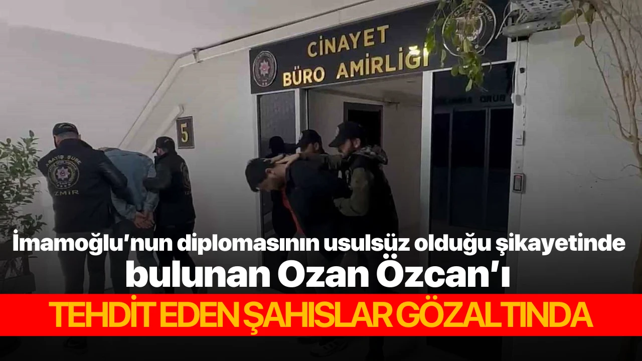 İstanbul Büyükşehir Belediye Başkanı Ekrem İmamoğlu’nun diplomasının usulsüz olduğu yönünde suç duyurusunda bulunan Ozan Özcan’ı (26) ve ailesini tehdit eden iki şüpheli, İzmir’de yakalanarak gözaltına alındı.