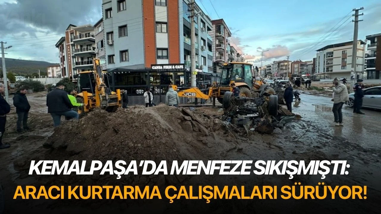 İzmir’in Kemalpaşa ilçesinde etkili olan sağanak yağışın ardından 4 araç İncepınar Deresi’ne sürüklendi. Ekipler. menfezde sıkışan araçlardan birini çıkarmak için çalışmalarını sürdürüyor.