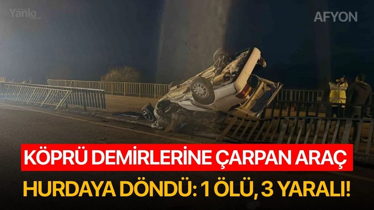 Afyonkarahisar’ın Bayat ilçesinde köprü demirlerine çarparak hurda yığınına dönem otomobilde 1 kişi öldü, 3 kişi de yaralandı.