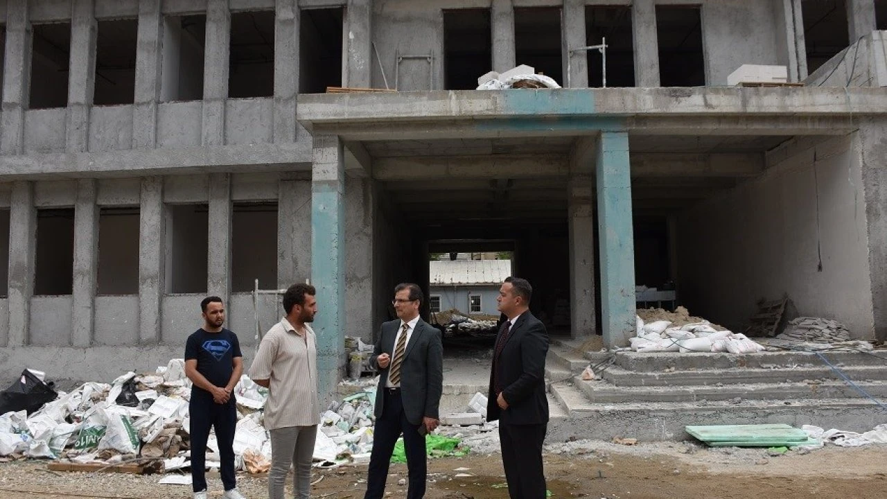 Çalışmaları yerinde inceleyen Kaymakam Güldoğan, inşaat çalışmalarının son durumu hakkında yetkililerden bilgi aldı.