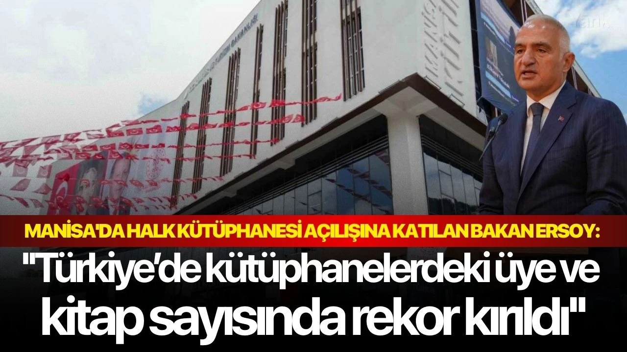 Manisa’da 7 bin 500 metrekarelik kapalı alana sahip Türkiye’nin en büyük kütüphanelerinden biri olan yeni Manisa İl Halk Kütüphanesi, Kültür ve Turizm Bakanı Mehmet Nuri Ersoy katıldığı törenle açıldı. Törende konuşma yapan Bakan Ersoy, 2024 yılı sonu verilerine göre halk kütüphanelerinde üye sayısının 6.7 milyona, kullanıcı sayısının 38.7 milyona, toplam kitap sayısının ise 25 milyona ulaştığını belirterek, tüm zamanların rekorlarının kırıldığını söyledi.