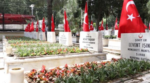 MANİSA'nın Şehzadeler ilçesinde yer alan Garnizon Şehitliği, büyükşehir ekiplerince çiçeklerle süsledi.