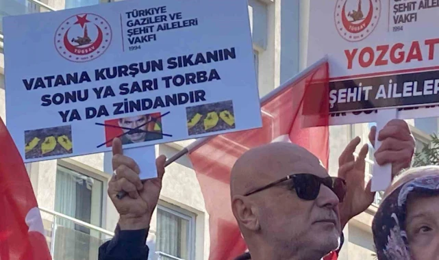 Şehit ve gazi yakınları protesto gösterisinde "Selahattin Demirtaş teröristtir", "Vatana kurşun sıkanın sonu sarı torba" yazılı pankartlar açtı.
