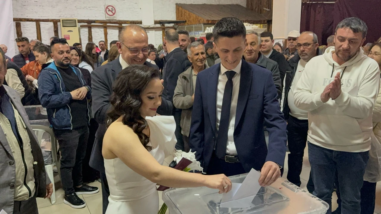 Manisa’nın Turgutlu ilçesinde bugün nikahı kıyılan çift nikah sonrası CHP’nin Cumhurbaşkanlığı ön seçiminde oy kullandı.