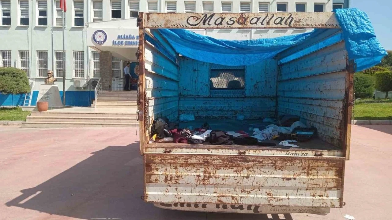 İzmir’in Aliağa ilçesinde kamyonet kasasında göçmen taşıyan göçmen kaçakçısı, polis ekipleri tarafından kıskıvrak yakalandı.
