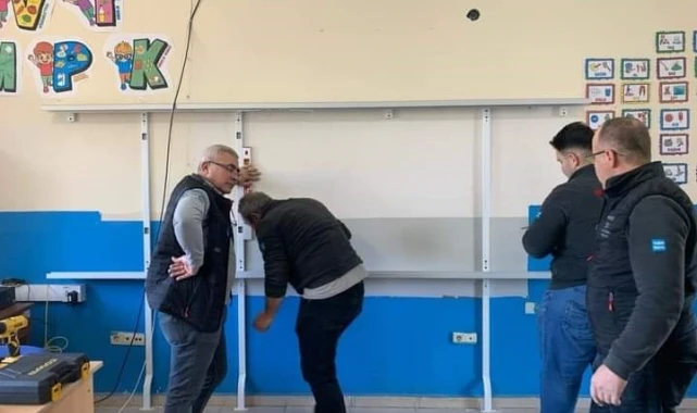 Manisa'nın Sarıgöl ilçesinde akıllı tahta ihtiyacı bulunan okullara ihtiyaçları temin edilmeye devam ediliyor.