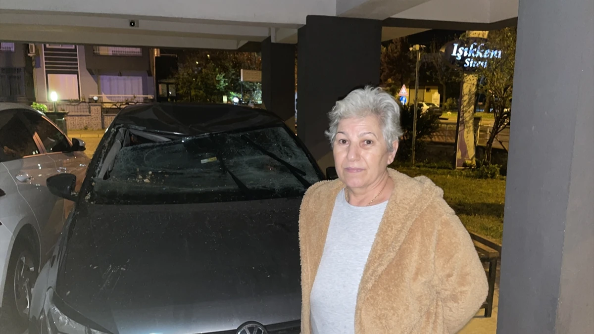 Zeybek Mahallesi 1529 Sokak'ta park halindeki araca da bir apartmanın çatı katındaki güneş enerjisinin su tankı düştü. Aracın sahibi Sebahat Sert, gürültüyü duyunca endişe duyduklarını, dışarı çıkınca bu manzarayla karşılaştıklarını söyledi.