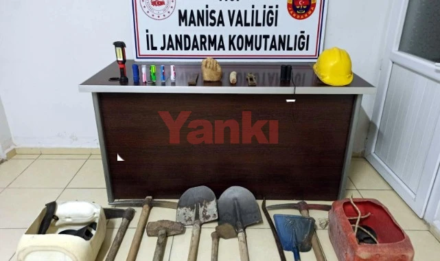 MANİSA'nın Salihli ilçesinde, kaçak kazı yaparken Mezolitik döneme ait olduğu değerlendirilen ayak figürü ile tarihi eser olduğu üzerinde durulan taş parçasıyla suçüstü yakalanan 7 kişi gözaltına alındı.