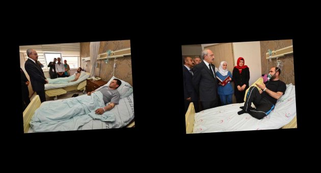 MANİSA'nın Soma İlçesi'nde, maden faciasında yaralanıp Akhisar Devlet Hastanesi Mustafa Kirazoğlu Sağlık Kompleksi'nde tedavi altına alınan işçileri, CHP Genel Başkanı Kemal Kılıçdaroğlu ziyaret etti.