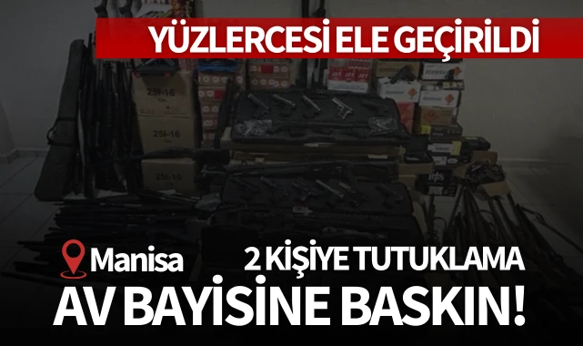 Manisa İl Emniyet Müdürlüğü ekipleri tarafından av bayisi olarak faaliyet gösteren bir iş yerinde faturasız ve ruhsatsız silah ticareti yapıldığı istihbaratı üzerine operasyon düzenledi. Ş.B. isimli şüphelinin iş yeri, depo ve aracında yapılan aramalarda 140 adet tüfek, 45 adet kuru sıkı tabanca, 9 adet parçalanmış vaziyette tüfek, 21 adet parçalanmış vaziyette kuru sıkı tabanca, 9 bin 450 adet 9 mm tabanca fişeği, 600 adet 7,65 mm tabanca fişeği, bin 900 adet av fişeği, 480 adet meşale, 71 paket havai fişek, 2 adet büyük tezgah üstü matkap ve tabanca ve tüfek tamiri için kullanıldığı değerlendirilen alet bulundu. Operasyonda el geçirilen malzemelere el konulurken Ş.B. ve N.B. isimli iki şüpheli gözaltına alındı. Emniyetteki ifadelerinin ardından adliyeye sevk edilen 2 şüpheli tutuklanarak cezaevine gönderildi.