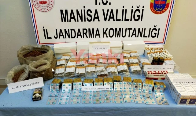 Ekiplerce iş yerinde ve şahsa ait otomobilinde yapılan aramada, 1933 adet sarma sigara, 1800 boş makaron, 30 kaçak sigara, 2 kilogram 500 gram kuru kıyılmış tütün ve 609 muhtelif içerikli hap ele geçirildi.