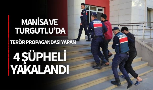 Manisa genelinde ve Turgutlu ilçesinde sosyal medya üzerinden terör örgütü propagandası yaptığı tespit edilen 4 şahıs yakalandı. Yakalanan şahıslara yönelik adli işlemlere başlandı.
