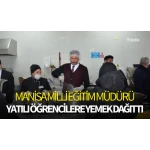 Yatılı öğrencilerin kaldığı yerleri ve yemekhaneyi de ziyaret ederek yetkililerden bilgiler alan Manisa İl Milli Eğitim Müdürü Mehmet Uğurelli daha sonra Sarıgöl İlçe Milli Eğitim Müdürü Cezmi Yıldırak ile birlikte ellerine kepçe alarak öğrencilere yemek servisinde bulundu.