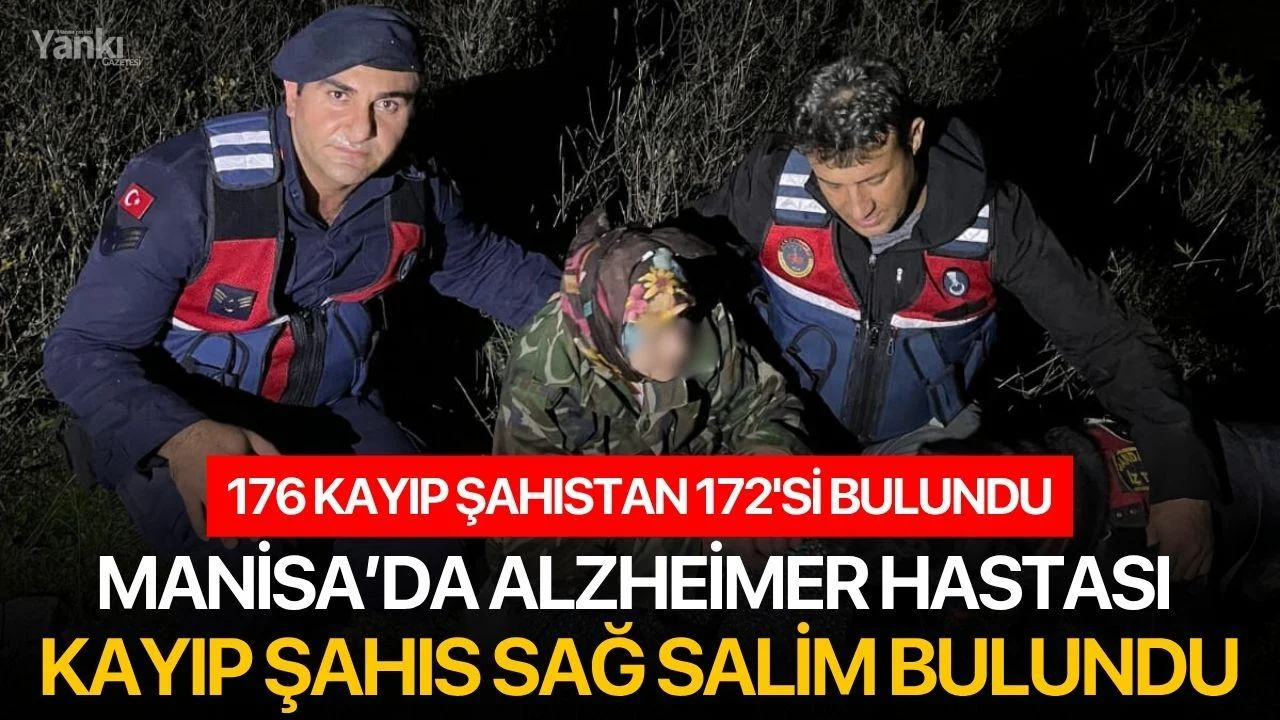 Manisa İl Jandarma Komutanlığı, 09 Kasım 2025 akşamı Alaşehir ilçesi Gülpınar Mahallesi’nde kaybolan 71 yaşındaki Alzheimer hastası Ş.K.’nin sağ olarak bulunduğunu duyurdu.