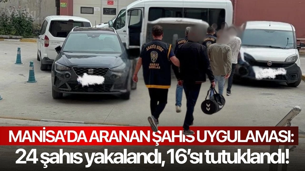 MANİSA İl Emniyet Müdürlüğü tarafından Asayiş Daire Başkanlığı koordinesinde, ülke genelinde gerçekleştirilen ’Aranan şahıslar uygulaması’ kapsamında Manisa il ve ilçelerinde yapılan çalışmalarda toplam 24 aranan şahıs yakalandı.