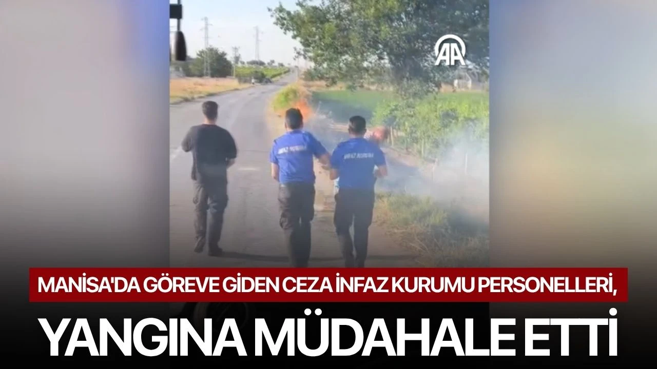 Manisa'da görevli ceza infaz kurumu personeli, mesaiye gittikleri sırada fark ettikleri yangına müdahale ederek yol kenarındaki üzüm bağı ve ağaçlara sıçramasını engelledi.