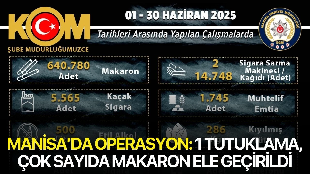 Manisa İl Emniyet Müdürlüğü Kaçakçılık ve Organize Suçlarla Mücadele Şube Müdürlüğü, 01 – 30 Haziran 2025 tarihleri arasında il genelinde gerçekleştirdiği operasyonlarla kaçakçılara büyük darbe vurdu.