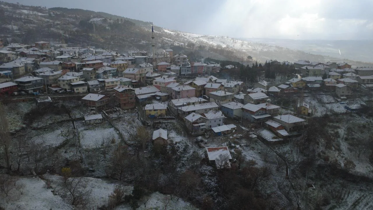 Kar yağışıyla birlikte Sarıçayır bölgesinde oluşan doğal güzellikler drone ile havadan görüntülendi.