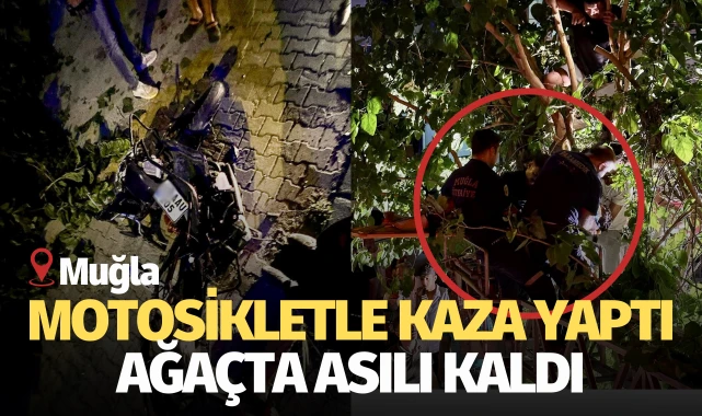 Muğla'nın Dalaman ilçesinde trafik kazasının ardından ağaçta asılı kalan yaralı, itfaiye ekibince kurtarıldı.