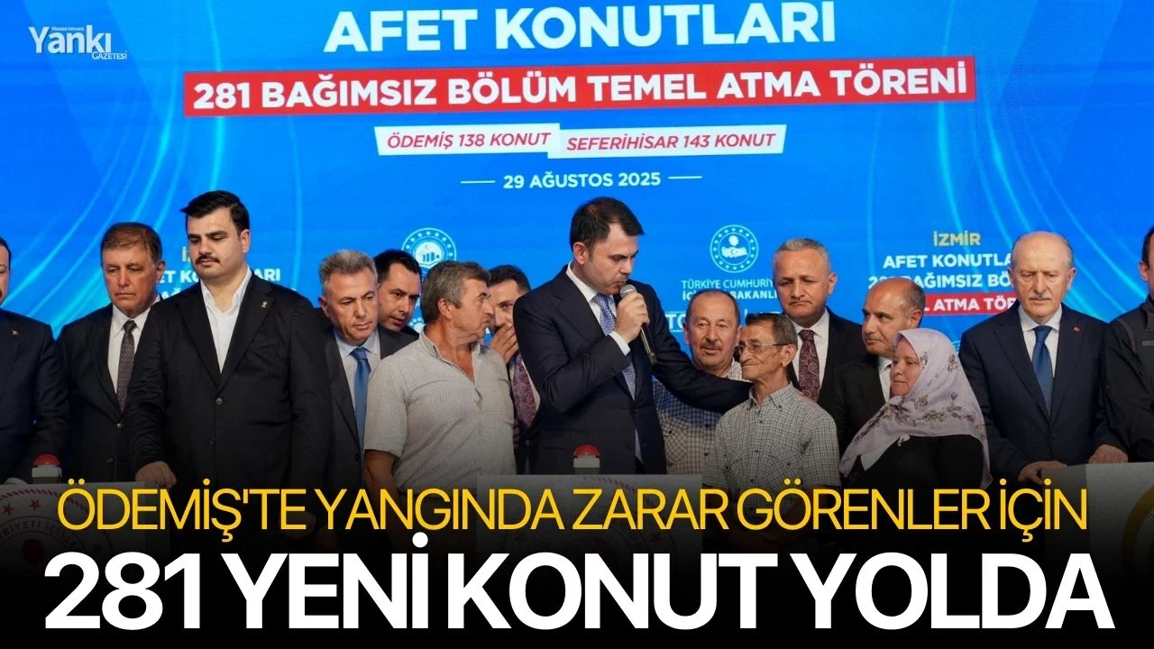 İzmir'in Ödemiş ilçesinde orman yangınları sonrası yeniden inşa edilecek konutların temel atma töreninde konuşan Çevre, Şehircilik ve İklim Değişikliği Bakanı Murat Kurum, "En geç 1 yıl içinde teslim edeceğimiz bu yeni yuvalarda aileler çocuklarıyla yeni hatıralar biriktirecek. İzmir'in bereketi yeniden canlanacak" dedi.