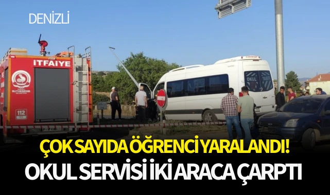 Denizli’nin Çivril ilçesinde iki araca çarptıktan sonra kavşaktaki aydınlatma direğine vuran okul servisindeki 7 öğrenci ile 1 yolcu yaralı olarak hastaneye kaldırıldı.