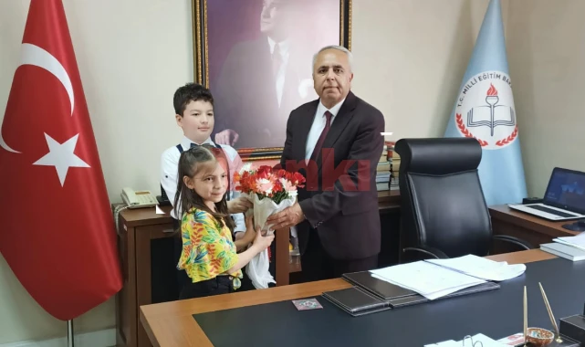 TURGUTLU İlçe Milli Eğitim Müdürü Mehmet Ölmez, 23 Nisan Ulusal Egemenlik ve Çocuk Bayramı kutlamaları kapsamında koltuğunu bir süreliğine 4.sınıf öğrencileri Nehir Tetik ve Ahmet Eren Kandemir'e kaptırdı.